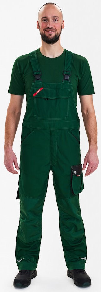 Funktionelle Latzhose mit vielen Details. Optimale Passform, u. a. sorgen ergonomisch geformte Knie und Panel an der Innennaht im Schritt für mehr Bequemlichkeit. Breites, elastisches Rückenteil und verstellbare Träger. Außentasche im Latz mit zusätzlichem Einschub für Stifte. Unter der Taschenpatte befindet sich eine Schlaufe mit D-Ring zur Befestigung einer ID-Karte. Große Reißverschlusstasche auf der Rückseite der Patte. Zwei geräumige, schräg sitzende Einschubtaschen vorne. Zwei geräumige Gesäßtaschen mit Patte und Klettverschluss. Große Schenkeltasche mit Reißverschlusstasche fürs Handy, zusätzliche kleine Tasche, die dank freihängenden Bodens für mehr Bewegungsfreiheit sorgt. Unten verstärkte Zollstocktasche mit zusätzlichen Fächern. Auch die Zollstocktasche hat einen freihängenden Boden. Knieverstärkung/Knietasche mit Klettverschluss unten sowie zwei Einstellmöglichkeiten für Knieschutzkissen. Verstärkter Saum der Hosenbeine hinten und vorne für extra hohe Verschleißfestigkeit. Reflexstreifen an den Knien und unten an den Hosenbeinen für mehr Sichtbarkeit. Für Industriewäsche geeignet.