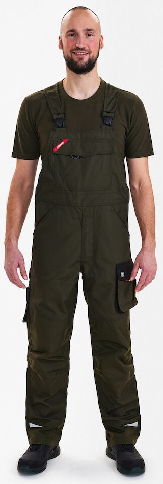 Funktionelle Latzhose mit vielen Details. Optimale Passform, u. a. sorgen ergonomisch geformte Knie und Panel an der Innennaht im Schritt für mehr Bequemlichkeit. Breites, elastisches Rückenteil und verstellbare Träger. Außentasche im Latz mit zusätzlichem Einschub für Stifte. Unter der Taschenpatte befindet sich eine Schlaufe mit D-Ring zur Befestigung einer ID-Karte. Große Reißverschlusstasche auf der Rückseite der Patte. Zwei geräumige, schräg sitzende Einschubtaschen vorne. Zwei geräumige Gesäßtaschen mit Patte und Klettverschluss. Große Schenkeltasche mit Reißverschlusstasche fürs Handy, zusätzliche kleine Tasche, die dank freihängenden Bodens für mehr Bewegungsfreiheit sorgt. Unten verstärkte Zollstocktasche mit zusätzlichen Fächern. Auch die Zollstocktasche hat einen freihängenden Boden. Knieverstärkung/Knietasche mit Klettverschluss unten sowie zwei Einstellmöglichkeiten für Knieschutzkissen. Verstärkter Saum der Hosenbeine hinten und vorne für extra hohe Verschleißfestigkeit. Reflexstreifen an den Knien und unten an den Hosenbeinen für mehr Sichtbarkeit. Für Industriewäsche geeignet.