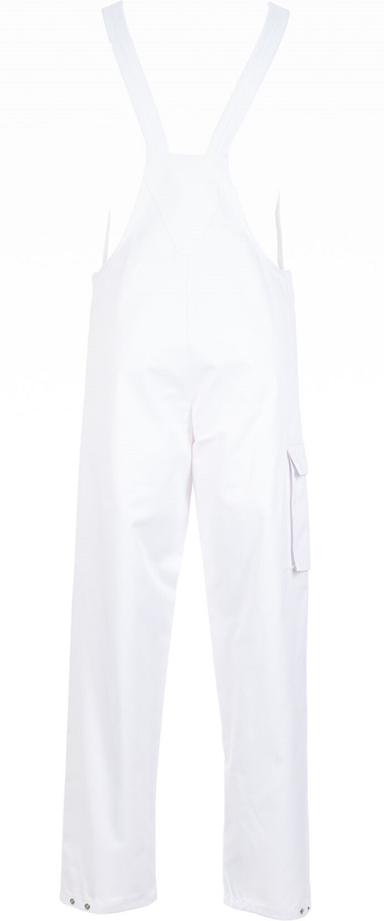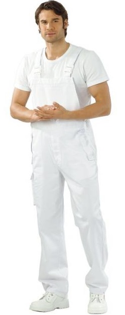Die Latzhose ist ein Allrounder. Mit vielen Verstellmöglichkeiten bietet sie nicht nur optimalen Tragekomfort, sondern auch hohe Hygienesicherheit durch die verdeckten Tascheneingriffe. Angelehnt an die Empfehlungen der HACCP und der DIN 10524 für Lebensmittelhygiene. Brustlatz mit Tasche innen liegend, 2 eingesetzte Beuteltaschen, mit Patten und Druckknöpfen zu verschließen, 1 Oberschenkeltasche rechts mit Patte und Druckknopf, elastische Einsätze an den Seiten, Sicherheitsschnallen an den Trägern, Fußweite mit Druckknopf zu verstellen.