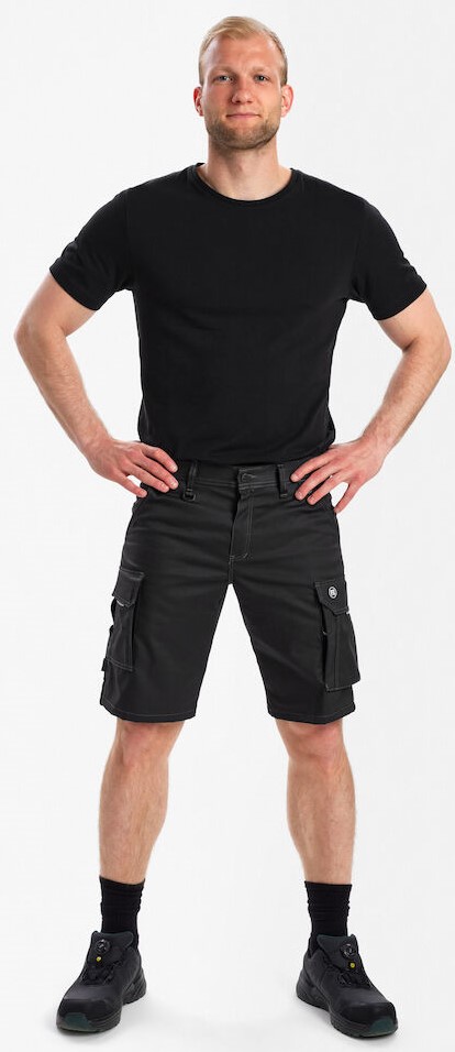 Funktionelle Handwerkershorts aus Stretch mit schmaler Passform und vielen praktischen Details. Einsätze aus extrem elastischem, atmungsaktivem Stretchmaterial im Innennaht-Panel sorgen für noch mehr Tragekomfort. D-Ring vorne, z. B. für eine ID-Karte. Zwei Gesäßtaschen. Handytasche mit Patte am rechten Oberschenkel. Links sitzt eine Schenkeltasche mit Patte. Die Schenkeltasche besitzt ein zusätzliches Fach mit Reißverschluss. Verstärkte Zollstocktasche mit zusätzlichen Fächern und Werkzeugschlaufen. Schenkeltasche und Zollstocktasche mit freihängendem Boden gewähren optimale Bewegungsfreiheit. Es können moderne Holstertaschen (9360-307) angebracht werden.