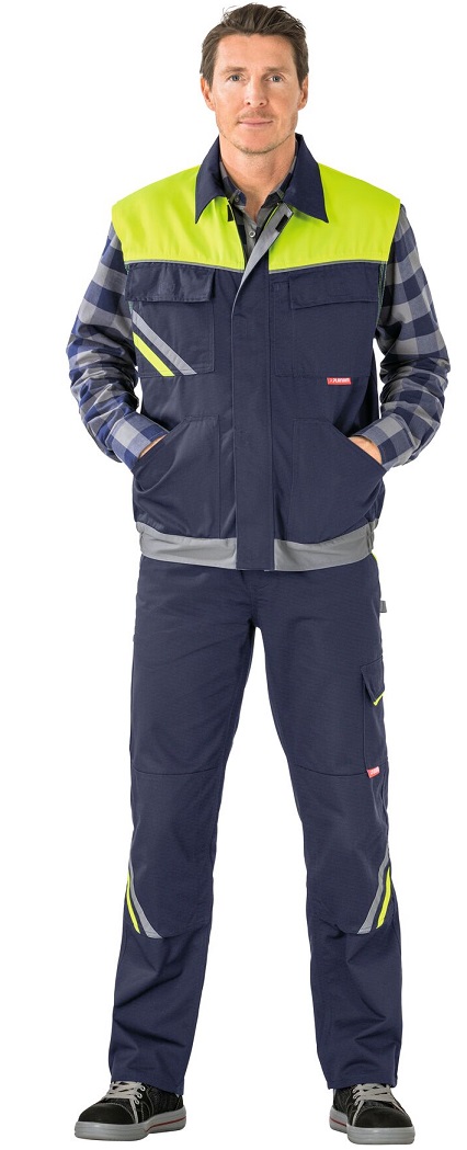 - Kontrastfarbe warnorange/warngelb: 85 % Polyester, 15 % Baumwolle