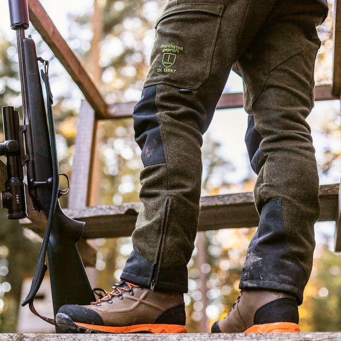 Bei unserer Sauenschutz- Jagdhose X-treme Protect Loden trifft Tradition auf Innovation. Unsere X-treme Protect aus Loden verbindet traditionelle Materialien wie die Verwendung von Loden und innovativen neuen Materialien wie unser Wild Protection Light Schutz, Cordura und Polyamid Materialien. Der eigens entwickelte PSS Loden ist ein stark verfilztes Lodengewebe mit einer Diagonalbindung, er besitzt zudem Elasthan und ist somit sehr dehnfähig. Loden bietet einfach viele Funktionelle Vorteile: Zum einen geräuscharm, wärmt auch in feuchtem Zustand, ist feuchtigkeitsableitend, einige Zeit wasserbeständig und hemmt unangenehme Gerüche.