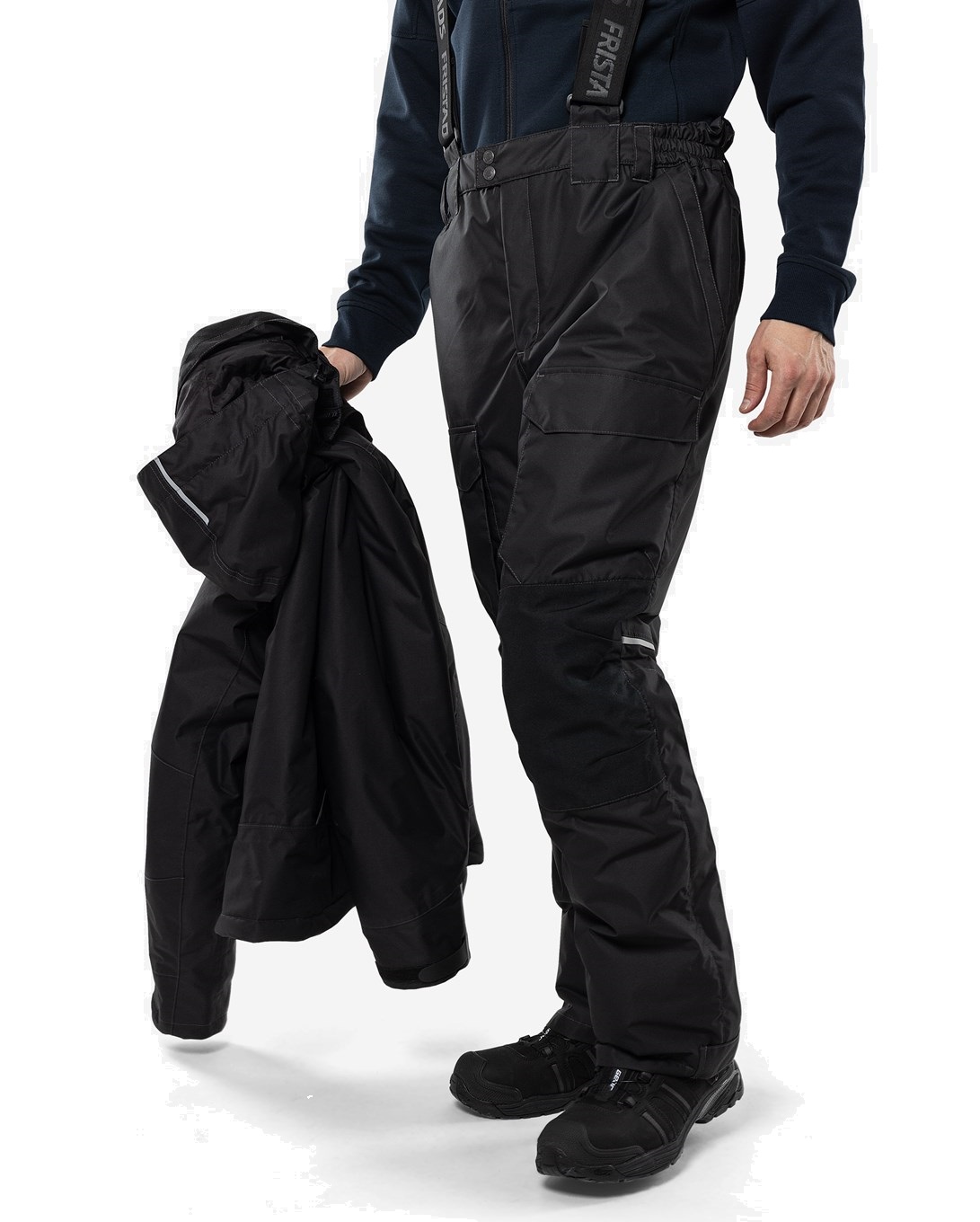 Wasserdichte Winterhose aus winddichtem und atmungsaktivem Airtech®-Material mit weicher Steppwattierung. Funktionelle, gefütterte Hose mit Reißverschlüssen an den Beinenden, die die Arbeit bei kalten Temperaturen erleichtert. Die abnehmbaren Hosenträger haben ein Fleece-Panel auf der Rückseite für zusätzlichen Wärmekomfort. Konzept: Alnaryd