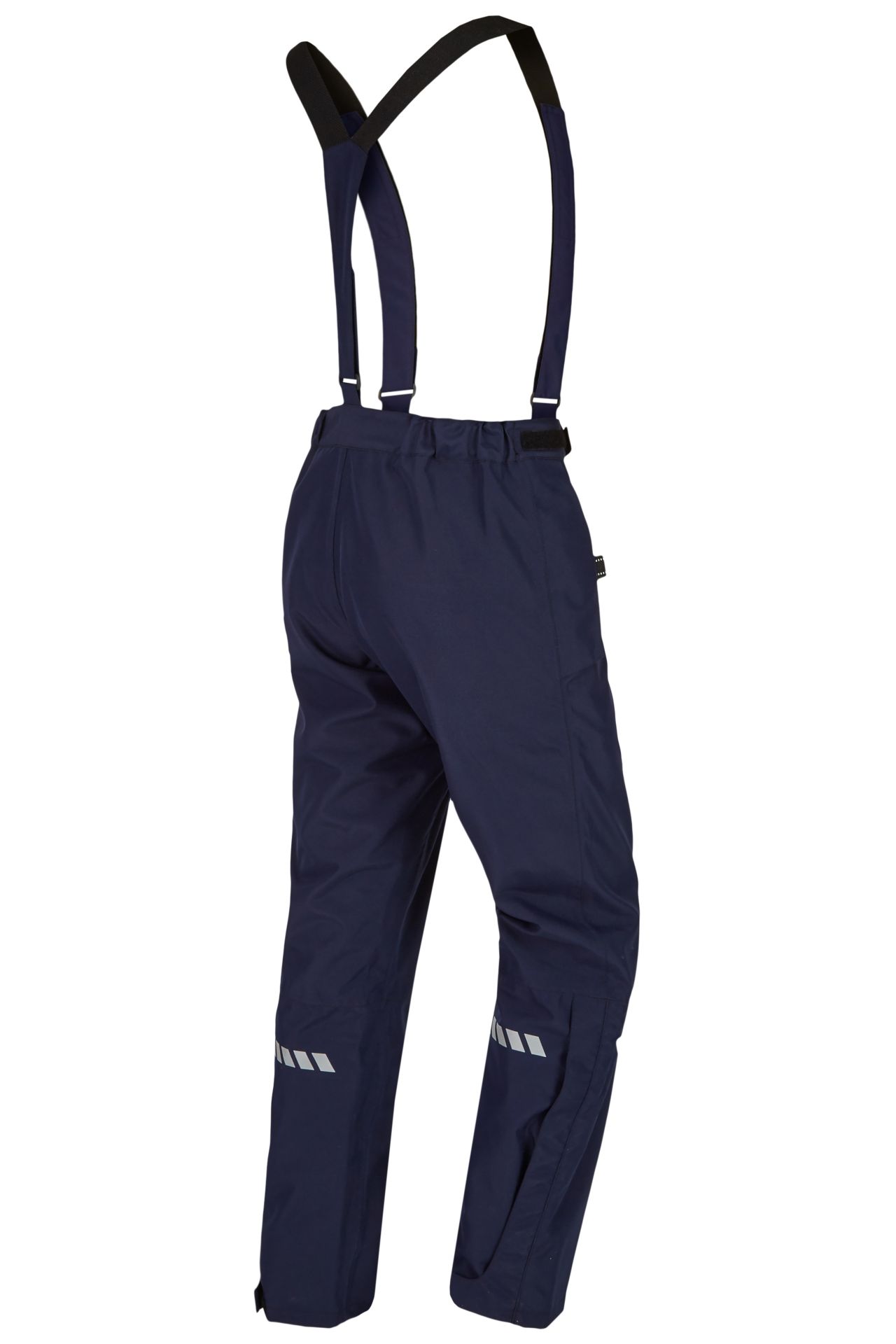 Ausführung: Abnehmbare Stretchträger, Trägerlänge verstellbar durch Klett, Bund weitenverstellbar durch Klettriegel zusätzlich mit seitlichem Gummizug, Schlitz mit Reißverschluss und Druckknopf, 2 Seitentaschen mit Patte und Klett, Beinabschluss mit seitlichem Reißverschluss sowie Klett zur Weitenverstellung, Reflexapplikationen an Beinen