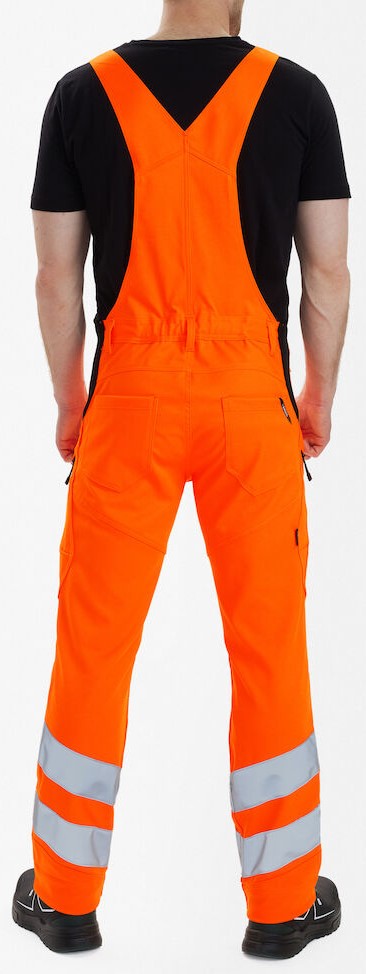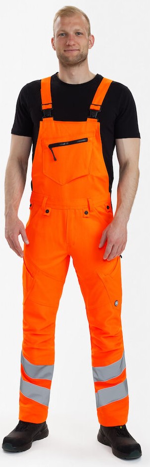 Dehnbare und funktionelle fluoreszierende Latzhose im modernen Design. Der dehnbare Stoff sorgt für optimale Bewegungsfreiheit und Komfort. Optimale Passform mit u. a. ergonomisch geformtem Kniebereich. Hoch geschnittenes Rückenteil und Rippstrickeinsätze an den Seiten sorgen für optimale Passform und Tragekomfort. Verstellbare Träger. Latztasche mit Reißverschluss. Latzinnentasche mit Reißverschluss. Zwei Gesäßtaschen. Zwei Schenkeltaschen mit Reißverschluss. Die linke Schenkeltasche hat eine zusätzliche Handytasche. Die rechte Schenkeltasche hat eine aufgesetzte Zollstocktasche mit zusätzlichen Unterteilungen. D-Ring an der Latztasche für die Befestigung von z. B. Ausweisen. Knieverstärkung/Knietasche mit Klettverschluss unten und besteht aus CORDURA®-Material. Breiter Saum unten, der ausgelassen werden kann, wenn zusätzliche Beinlänge erforderlich ist. Um die Hose zu verlängern, muss lediglich eine Naht aufgetrennt werden. Das Hosenbein ist trotzdem noch gesäumt. Bekleidungsklasse 2. Nach 50 mal Waschen getestet