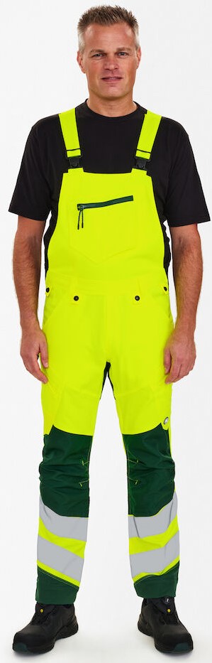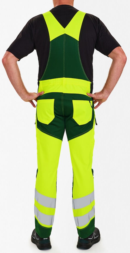 Dehnbare und funktionelle fluoreszierende Latzhose im modernen Design. Der dehnbare Stoff sorgt für optimale Bewegungsfreiheit und Komfort. Optimale Passform mit u. a. ergonomisch geformtem Kniebereich. Hoch geschnittenes Rückenteil und Rippstrickeinsätze an den Seiten sorgen für optimale Passform und Tragekomfort. Verstellbare Träger. Latztasche mit Reißverschluss. Latzinnentasche mit Reißverschluss. Zwei Gesäßtaschen. Zwei Schenkeltaschen mit Reißverschluss. Die linke Schenkeltasche hat eine zusätzliche Handytasche. Die rechte Schenkeltasche hat eine aufgesetzte Zollstocktasche mit zusätzlichen Unterteilungen. D-Ring an der Latztasche für die Befestigung von z. B. Ausweisen. Knieverstärkung/Knietasche mit Klettverschluss unten und besteht aus CORDURA®-Material. Breiter Saum unten, der ausgelassen werden kann, wenn zusätzliche Beinlänge erforderlich ist. Um die Hose zu verlängern, muss lediglich eine Naht aufgetrennt werden. Das Hosenbein ist trotzdem noch gesäumt. Bekleidungsklasse 2. Nach 50 mal Waschen getestet