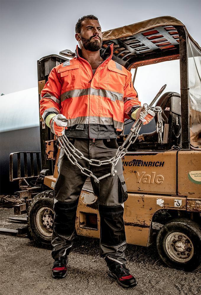 NITRAS MOTION TEX VIZ PLUS, Warnschutz-Pilotenjacke, neonorange / blau, abnehmbare Ärmel, hochwertiges, herausnehmbares Polar-Fleece, abnehmbare, ungefütterte Kapuze, je zwei Brust- und Seitentaschen, Smartphone-Tasche, Ärmeltasche, Napoleontasche, Innentaschen, umlaufende 3M Scotchlite™-Reflexstreifen, 2-Wege-Reißverschluss, abnehmbare Winterkapuze optional erhältlich, Brusttasche mit innenliegender Schlaufe für Ausweishüllen
