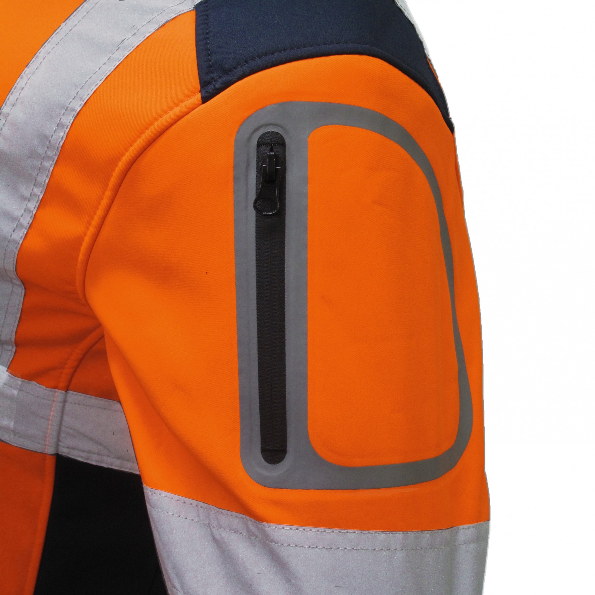- 1 Brusttasche, 1 Oberarmtasche und 2 Seitentaschen mit wasserdichtem Reißverschluss, 2 Innentaschen mit Klettverschluss