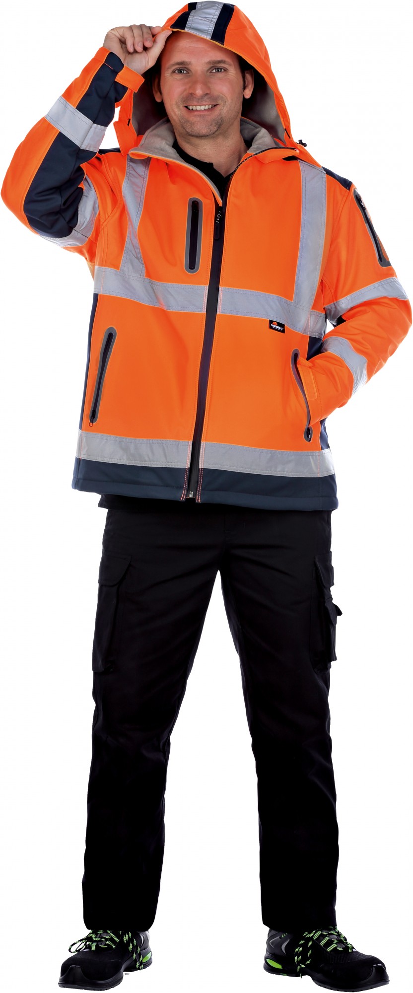 - abtrennbare Kapuze in Längs- und Querrichtung verstellbar, Ärmelbündchen mit Klettverschluss verstellbar