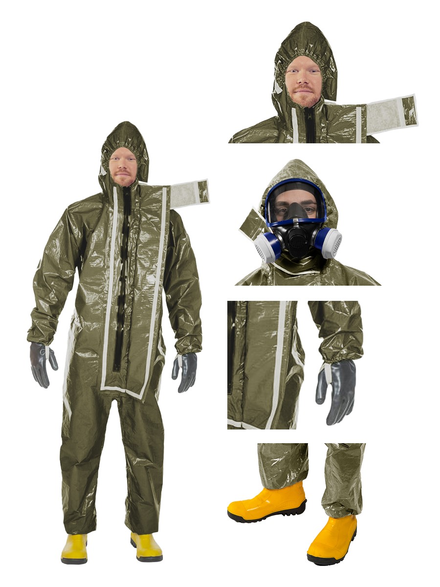 Der Anzug wird aus unserem CLF-Material hergestellt, dieses besteht aus einer mehrschichtigen strapazierfähigen Barriere Folie und einem feuchtigkeitsabsorbierenden Innenvlies, welches dem Träger höchsten Komfort bei optimalen Schutz bietet. Es schützt vor einer Reihe chemischer Gefahrstoffe, darunter Säuren, Laugen und organische Chemikalien. Es ist äußerst geräuscharm und dank seiner hervorragenden antistatischen Eigenschaften ideal für den Einsatz in Ex-Bereichen geeignet. Es erfüllt die Anforderungen an die normativ definierte Biobarriere der höchsten Klasse und bietet somit einen erstklassigen Schutz gegen biologische Gefahren.
