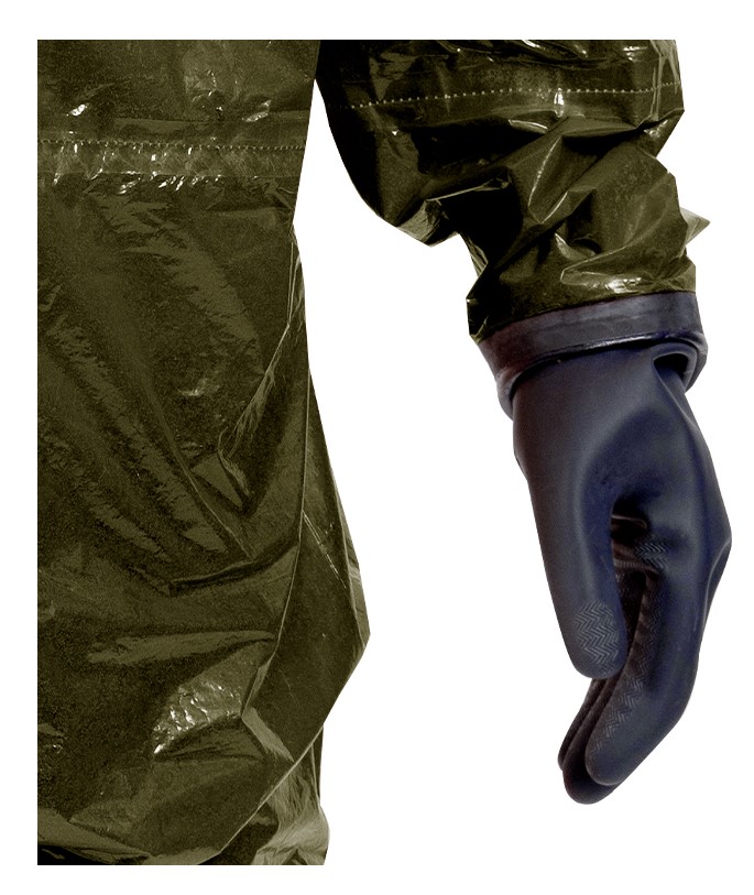 Fest angearbeitete KCL Camapren 720 Neoprenhandschuh, welche eine gute Beständigkeit gegen tierische und pflanzliche Öle und Fette, sowie viele Säuren und Laugen bieten, runden den Anzug ab. Durch das Material ist er zudem sehr temperaturbeständig und kälteflexibel.