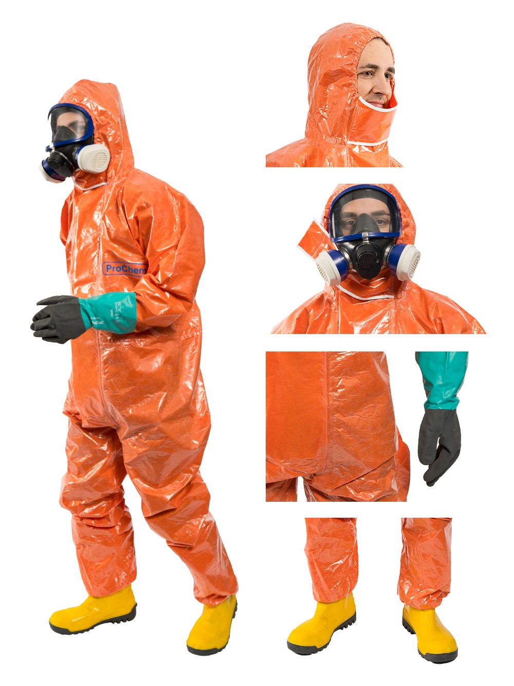 Der ProChem® I wird vornehmlich in der Industrie- und Tankreinigung, bei Inspektionsarbeiten und bei Einsätzen von Feuerwehren und Rettungskräften verwendet. Gummizüge an Ärmeln, Beinen und Kapuze sowie ein Taillengummi sorgen für eine optimale Passform und der großzügig geschnittene Schrittbereich für optimale Bewegungsfreiheit. Die ergonomische Kapuze und die erhöhte doppelte Abdeckblende mit Klettverschluss über dem Reißverschluss bis zum Kinn bieten zusätzlichen Schutz. Elastische Daumenschlaufen verhindern das Hochrutschen der Ärmel bei Überkopfarbeiten.