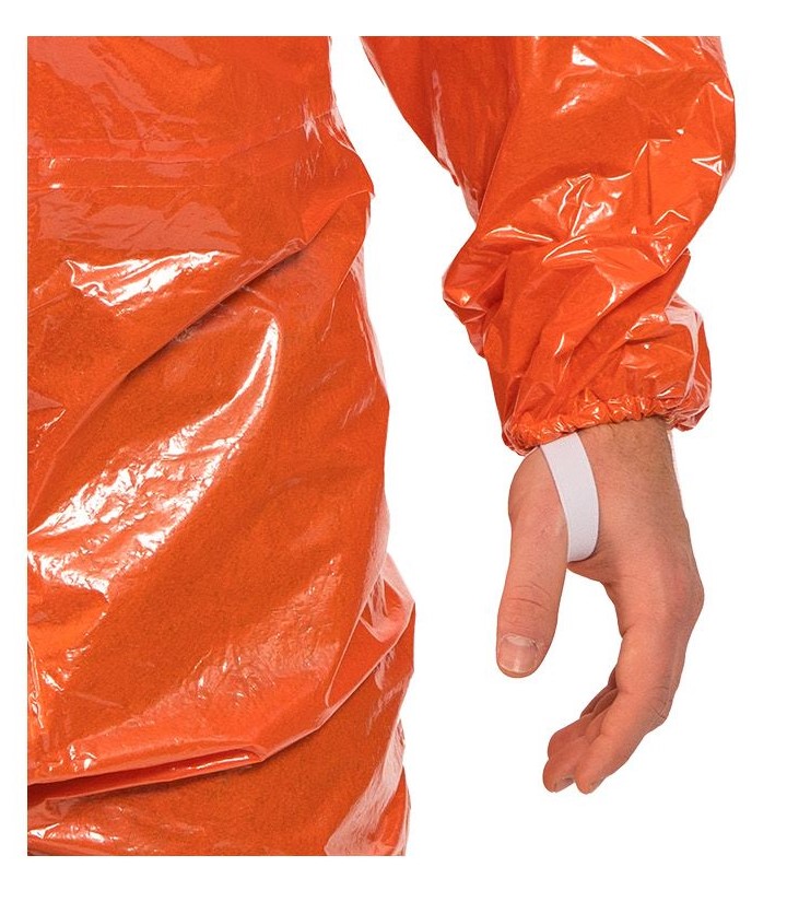 Des Weiteren ist der Anzug mit doppelten Armmanschetten ausgestattet, welche für ein sicheres Abtropfen von Flüssigkeiten sorgen und somit Kontaminationen vermeiden.