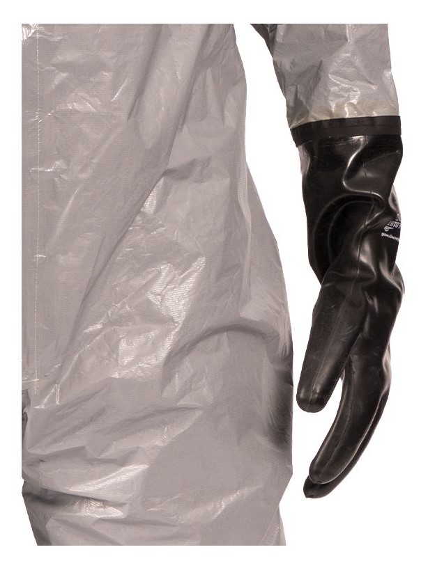Fest angearbeitete anatomische KCL Butoject 898 Butylhandschuhe, welche auch bei Kälte hochflexibel sind und gute Ozon-, UV- und Temperaturbeständigkeit bieten, runden den Anzug ab. Der Handschuh ist gasundurchlässig und beständig gegen viele Säuren, Laugen, Lösungen, Alkohole, Ester, Weichmacher und Ketone.