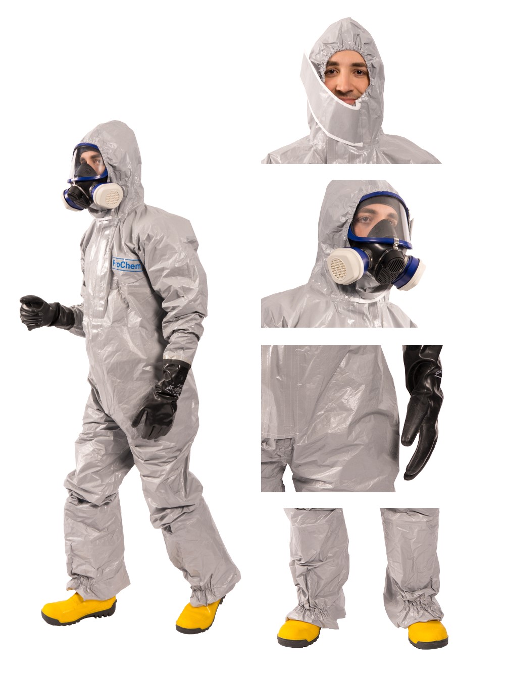 Der ProChem® I wird vornehmlich in der Industrie- und Tankreinigung, bei Inspektionsarbeiten und bei Einsätzen von Feuerwehren und Rettungskräften verwendet. Gummizüge an Ärmeln, Beinen und Kapuze sowie ein Taillengummi sorgen für eine optimale Passform und der großzügig geschnittene Schrittbereich für optimale Bewegungsfreiheit. Die ergonomische Kapuze und die erhöhte doppelte Abdeckblende mit Klettverschluss über dem Reißverschluss bis zum Kinn bieten zusätzlichen Schutz. Elastische Daumenschlaufen verhindern das Hochrutschen der Ärmel bei Überkopfarbeiten.