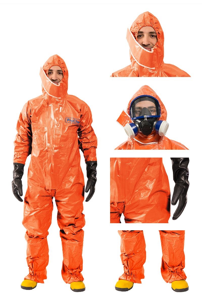 Der ProChem® I wird vornehmlich in der Industrie- und Tankreinigung, bei Inspektionsarbeiten und bei Einsätzen von Feuerwehren und Rettungskräften verwendet. Gummizüge an Ärmeln, Beinen und Kapuze sowie ein Taillengummi sorgen für eine optimale Passform und der großzügig geschnittene Schrittbereich für optimale Bewegungsfreiheit. Die ergonomische Kapuze und die erhöhte doppelte Abdeckblende mit Klettverschluss über dem Reißverschluss bis zum Kinn bieten zusätzlichen Schutz. Elastische Daumenschlaufen verhindern das Hochrutschen der Ärmel bei Überkopfarbeiten.