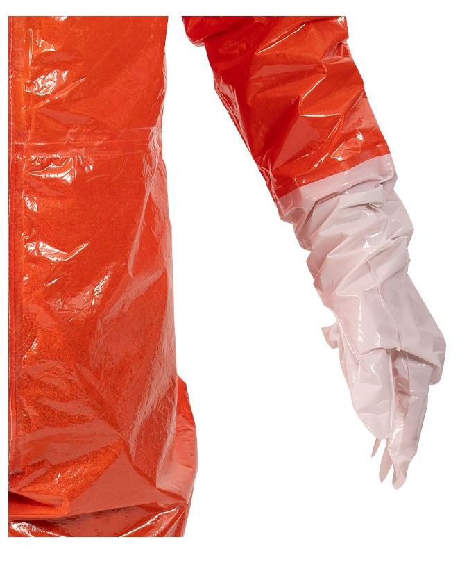Fest angearbeitete ANSELL Barrier Laminathandschuh mit Schutzstulpe runden den Anzug ab und bieten eine anatomische Passform, sowie Schutz vor einem äußerst breiten Spektrum von Chemikalien und Flüssigkeiten.