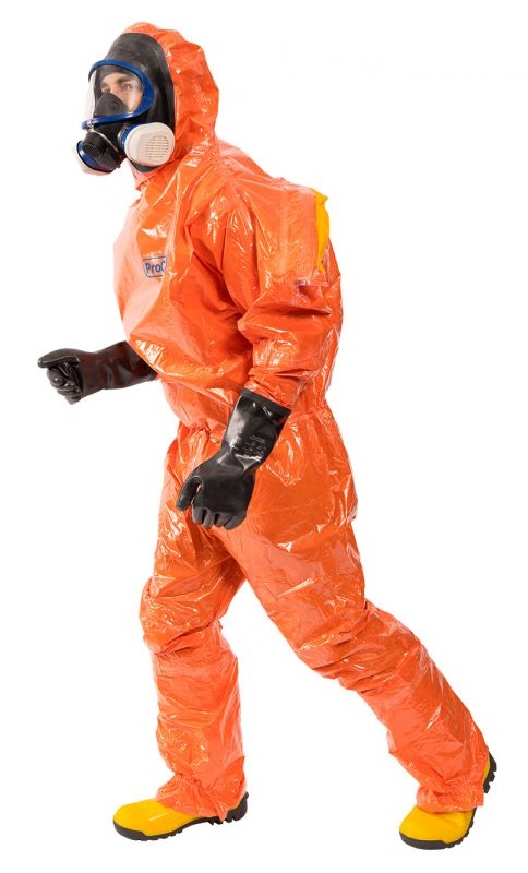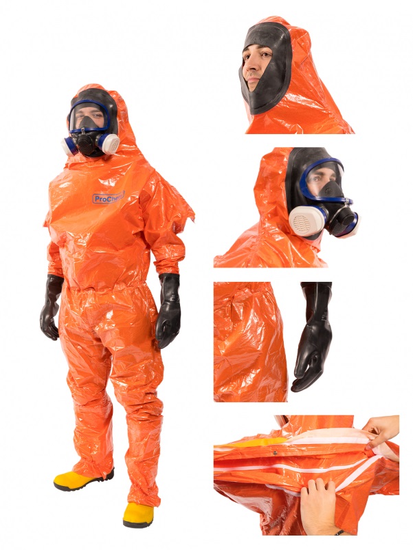Der ProChem® II wird vornehmlich bei Tank- und Kanalreinigungen, im Umgang mit festen und flüssigen Gefahrstoffen oder bei Dekontaminierungsarbeiten und Gefahrguteinsätzen verwendet. Gummizüge an Ärmeln und Beinen sowie ein Taillengummi sorgen für eine optimale Passform und der großzügig geschnittene Schrittbereich für optimale Bewegungsfreiheit. Der waagerechte Einstieg im Rücken mit geschützter Wickelblende und Klettverschluss bietet einen dichten Verschluss. Eine Gesichtsmanschette aus Butyl dichtet die Außenseite von Vollschutzmasken optimal ab.