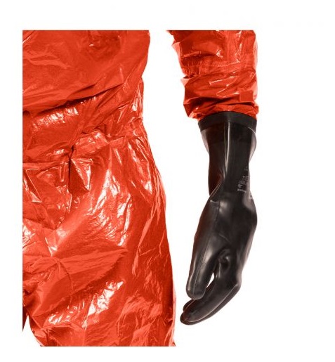 Fest angearbeitete anatomische KCL Butoject 898 Butylhandschuhe, welche auch bei Kälte hochflexibel sind und gute Ozon-, UV- und Temperaturbeständigkeit bieten, runden den Anzug ab. Der Handschuh ist gasundurchlässig und beständig gegen viele Säuren, Laugen, Lösungen, Alkohole, Ester, Weichmacher und Ketone.