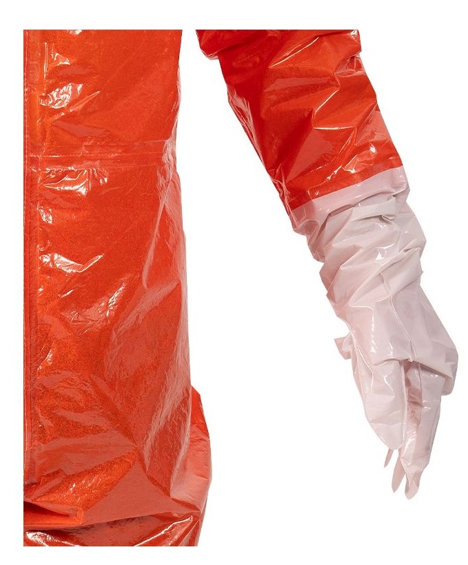 Fest angearbeitete ANSELL Barrier Laminathandschuh mit Schutzstulpe runden den Anzug ab und bieten eine anatomische Passform, sowie Schutz vor einem äußerst breiten Spektrum von Chemikalien und Flüssigkeiten.