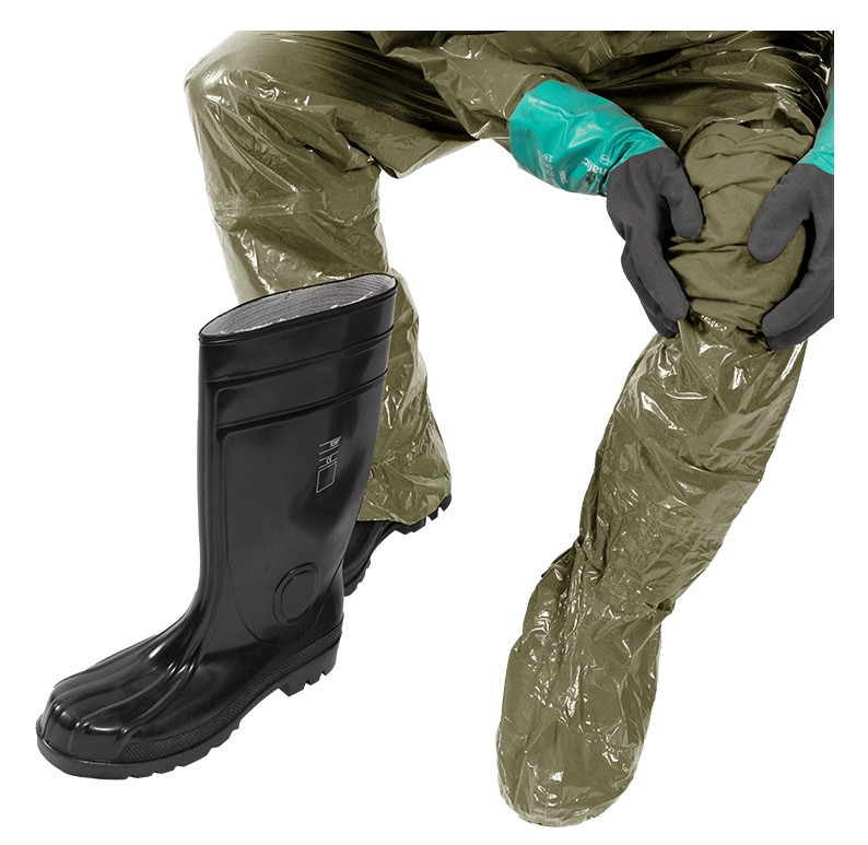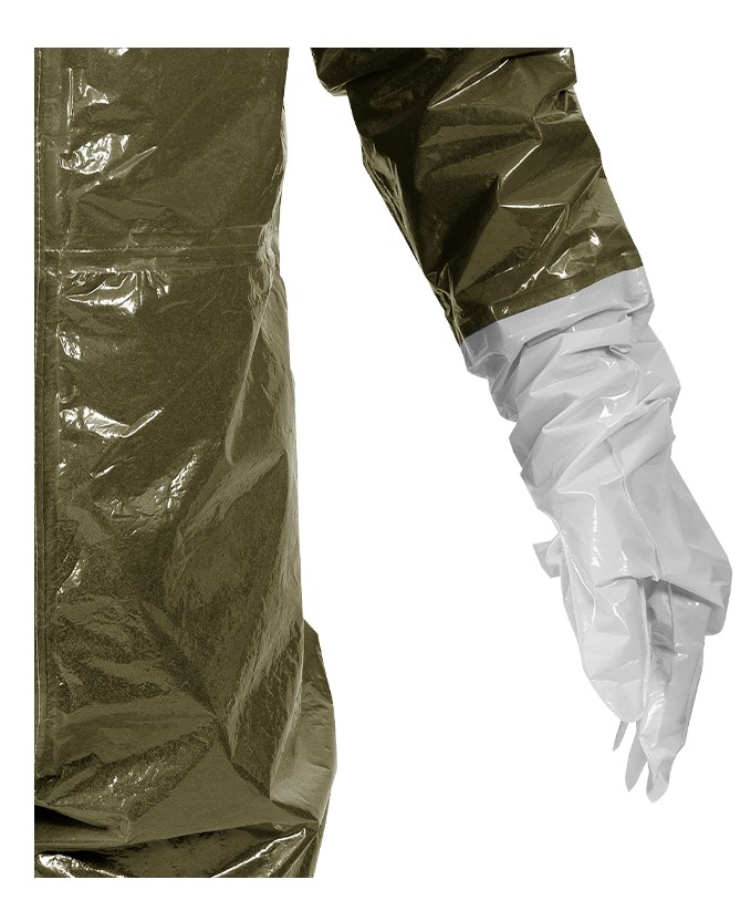 Fest angearbeitete ANSELL Barrier Laminathandschuh mit Schutzstulpe runden den Anzug ab und bieten eine anatomische Passform, sowie Schutz vor einem äußerst breiten Spektrum von Chemikalien und Flüssigkeiten.