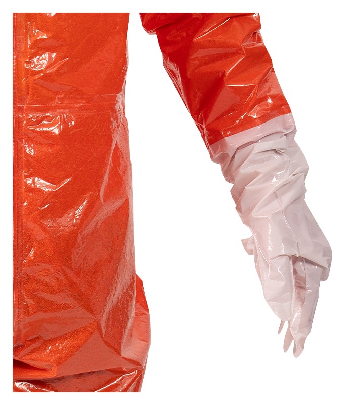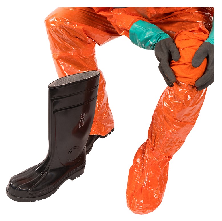 Fest angearbeitete ANSELL Barrier Laminathandschuh mit Schutzstulpe runden den Anzug ab und bieten eine anatomische Passform, sowie Schutz vor einem äußerst breiten Spektrum von Chemikalien und Flüssigkeiten.