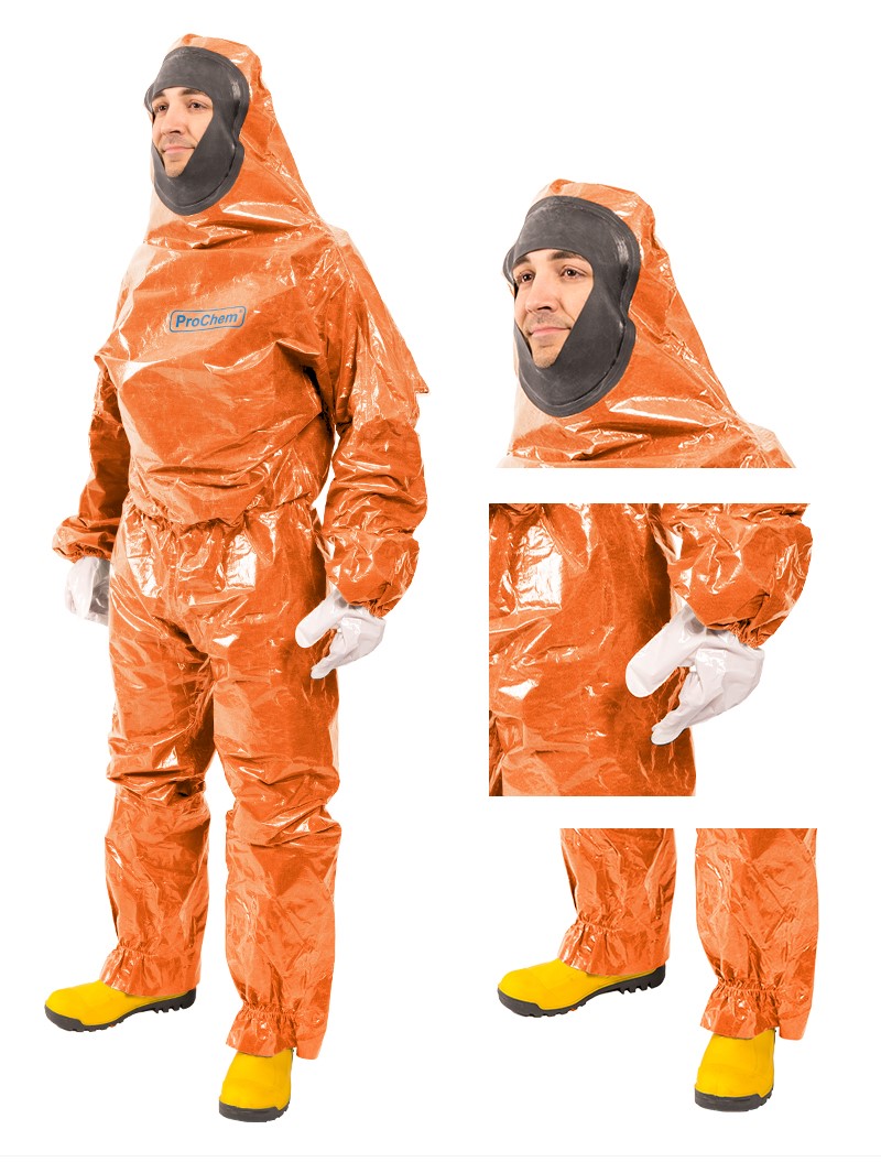 Der ProChem® II wird vornehmlich bei Tank- und Kanalreinigungen, im Umgang mit festen und flüssigen Gefahrstoffen oder bei Dekontaminierungsarbeiten und Gefahrguteinsätzen verwendet. Gummizüge an Ärmeln und Beinen sowie ein Taillengummi sorgen für eine optimale Passform und der großzügig geschnittene Schrittbereich für optimale Bewegungsfreiheit. Der waagerechte Einstieg im Rücken mit geschützter Wickelblende und Klettverschluss bietet einen dichten Verschluss. Eine Gesichtsmanschette aus Butyl dichtet die Außenseite von Vollschutzmasken optimal ab.