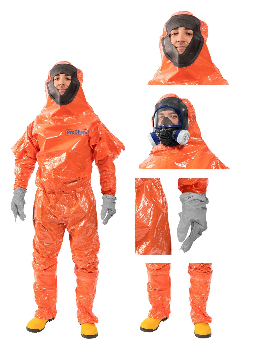 Der ProChem® II wird vornehmlich bei Tank- und Kanalreinigungen, im Umgang mit festen und flüssigen Gefahrstoffen oder bei Dekontaminierungsarbeiten und Gefahrguteinsätzen verwendet. Gummizüge an Ärmeln und Beinen sowie ein Taillengummi sorgen für eine optimale Passform und der großzügig geschnittene Schrittbereich für optimale Bewegungsfreiheit. Der waagerechte Einstieg im Rücken mit geschützter Wickelblende und Klettverschluss bietet einen dichten Verschluss. Eine Gesichtsmanschette aus Butyl dichtet die Außenseite von Vollschutzmasken optimal ab.