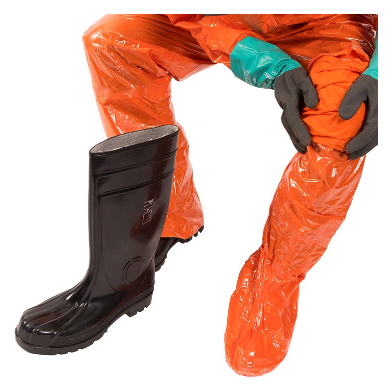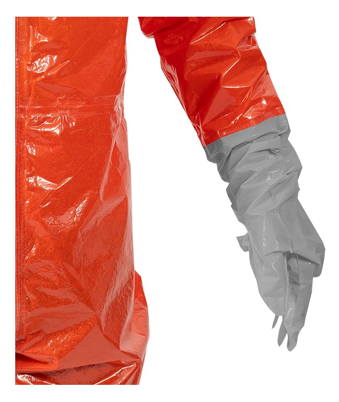 Fest angearbeitete RESPIREX Kemblok Laminathandschuh, welche gut als Innenhandschuh unter robusten Handschuhen getragen werden können und silikon- und latexfrei sind, runden den Anzug ab. Das siebenschichtige Material bietet hervorragenden Schutz vor einem breiten Spektrum an Chemikalien.