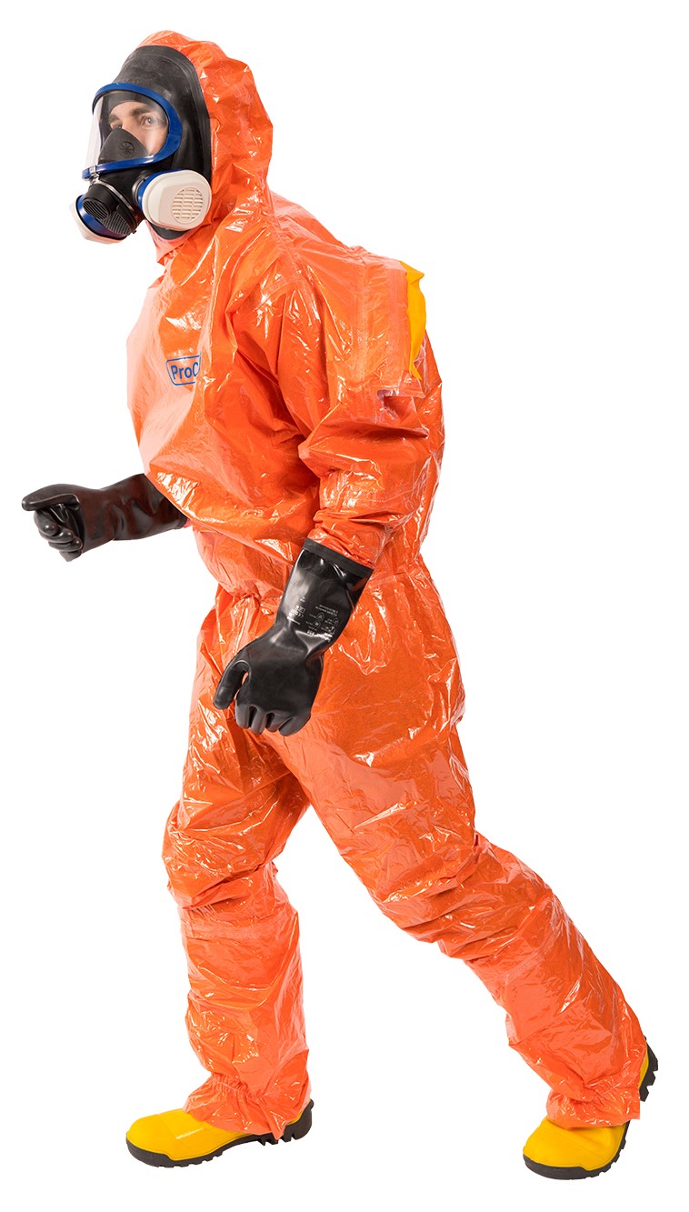 Der ProChem® II wird vornehmlich bei Tank- und Kanalreinigungen, im Umgang mit festen und flüssigen Gefahrstoffen oder bei Dekontaminierungsarbeiten und Gefahrguteinsätzen verwendet. Gummizüge an Ärmeln und Beinen sowie ein Taillengummi sorgen für eine optimale Passform und der großzügig geschnittene Schrittbereich für optimale Bewegungsfreiheit. Der waagerechte Einstieg im Rücken mit geschützter Wickelblende und Klettverschluss bietet einen dichten Verschluss. Eine Gesichtsmanschette aus Butyl dichtet die Außenseite von Vollschutzmasken optimal ab.