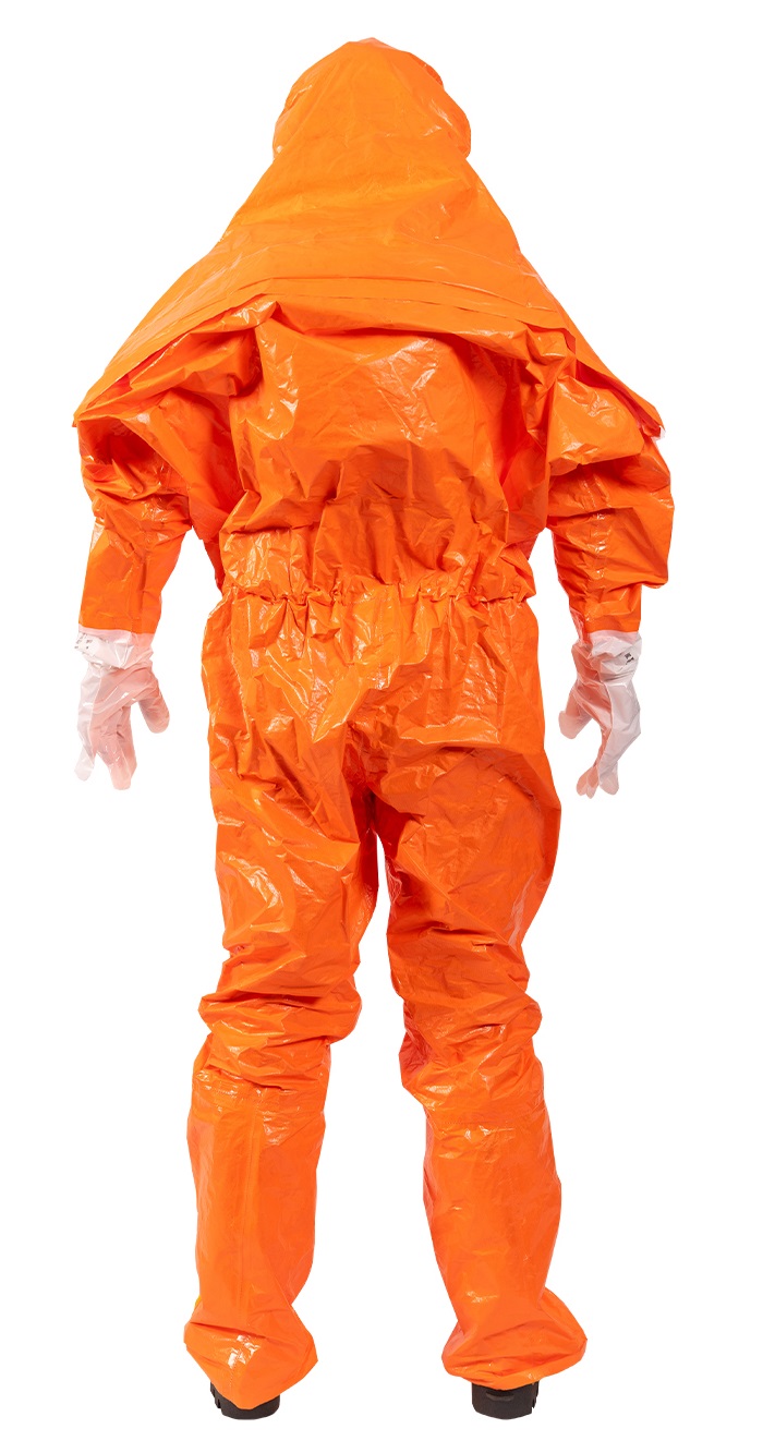 Hergestellt wird der Anzug aus Tychem F, selbiges ist ein leichtes, widerstandsfähiges Material und bietet eine hohe Barriere gegen die Permeation einer Vielzahl von Chemikalien und schützt den Träger vor zahlreichen organischen und hochkonzentrierten anorganischen Chemikalien. Antistatisch ausgerüstet ist es ebenfalls.