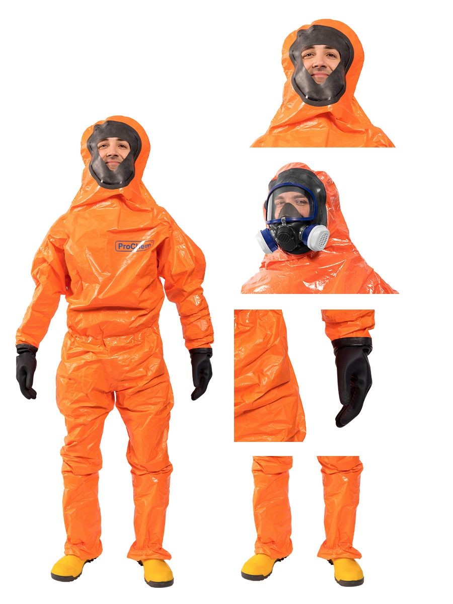 Der ProChem® II wird vornehmlich bei Tank- und Kanalreinigungen, im Umgang mit festen und flüssigen Gefahrstoffen oder bei Dekontaminierungsarbeiten und Gefahrguteinsätzen verwendet. Gummizüge an Ärmeln und Beinen sowie ein Taillengummi sorgen für eine optimale Passform und der großzügig geschnittene Schrittbereich für optimale Bewegungsfreiheit. Der waagerechte Einstieg im Rücken mit geschützter Wickelblende und Klettverschluss bietet einen dichten Verschluss. Eine Gesichtsmanschette aus Butyl dichtet die Außenseite von Vollschutzmasken optimal ab.