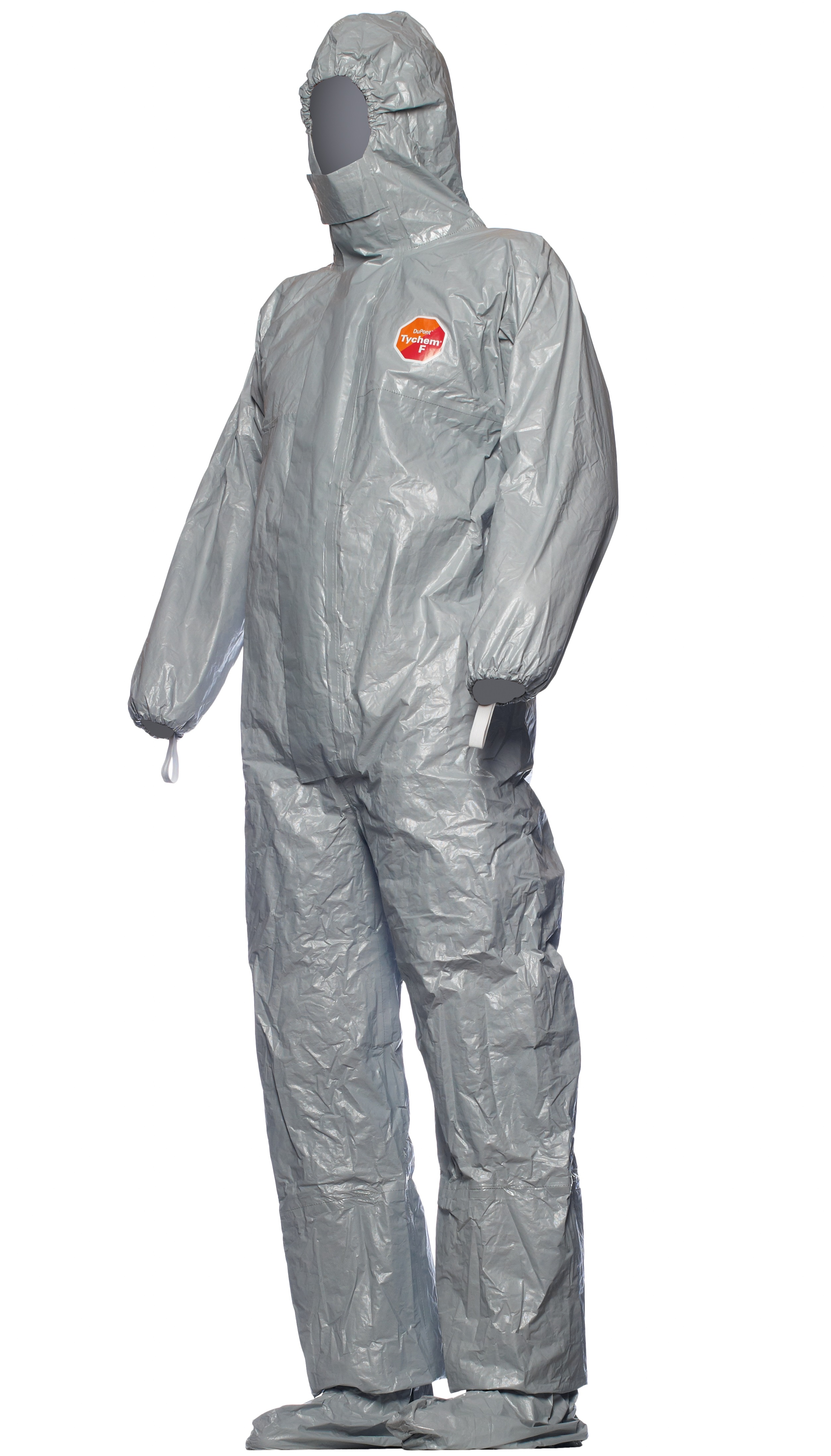 Produktinformationen "DuPont Tychem-F CHA6 Schutzoverall mit Füßlingen Kat. III Typ 3B + 4B + 5B + 6B"