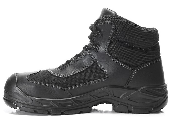 Eins ist klar, am besten sind Arbeitsschuhe, wenn man sie so gut wie gar nicht bemerkt, sich aber blind auf sie verlassen kann. Der Sicherheitsschnürstiefel jo_BUILDER Compo Mid ESD S3S ist bequem und dank Zehenschutzkappe aus Kunststoff und textilem Durchtrittschutz nicht so schwer wie andere Baustellenstiefel. Dank des Obermaterials aus Rindleder und hydrophobiertem Textilmaterial wird Nässe von außen abgewehrt und auch innen kann sich keine Flüssigkeit ansammeln, etwa in Form von Schweiß, weil das Textilinnenfutter sehr atmungsaktiv ist. Die PU/PU Sohle jo_EXPLORE bietet die nötige Rutschhemmung, so dass man auch auf rutschigen Böden nicht so schnell den Halt verliert. Weil wir gerade von Halt sprechen, wollen wir auch die 10 mm Absatzkante erwähnen, die für den praktischen „Laddergrip“ sorgt. Wer also auf der Baustelle auf ein Gerüst klettern muss, findet damit genügend Halt und Stabilität. Mit der PU-Überkappe ist die Schuhspitze gegen vorzeitigen Abrieb geschützt, dank ESD-Fähigkeit kann man auch in elektronisch sensiblen Einsatzbereichen arbeiten. Zu haben ist der Stiefel in den Größen 35 bis 47.