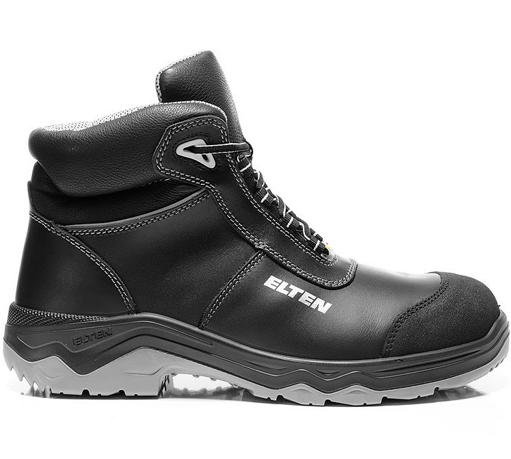 LEROY Mid ESD S2 ist ein Sicherheitsstiefel aus der ELTEN NEW CLASSICS Serie, ESD-fähig und erhältlich in den Größen 38 bis 48. Robuste Materialien und solide Machart zeichnen ihn aus: Das strapazierfähige Rindleder ist sehr widerstandsfähig, und der abriebfeste Spitzenschutz sorgt für die Langlebigkeit des LEROY Mid ESD S2. Dieser Fußschutz darf gemäß DGUV Regel 112-191 orthopädisch angepasst werden: ein großer Vorzug für Beschäftigte, die auf orthopädisch verändertes Schuhwerk angewiesen sind. Im Inneren des Sicherheitsstiefels entsteht durch atmungsaktives textiles Futter ein gutes Schuhklima. Die Zehen werden durch Stahlkappen geschützt, die Laufsohle ‒ in Grau optisch ansprechend vom dunklen Schaft abgesetzt ‒ sorgt für sehr guten Halt auf unsicherem Grund. Bei schlechten Lichtverhältnissen gewährleistet dieser „klassische“ Sicherheitsstiefel zusätzliche Sicherheit durch Reflexmaterial.