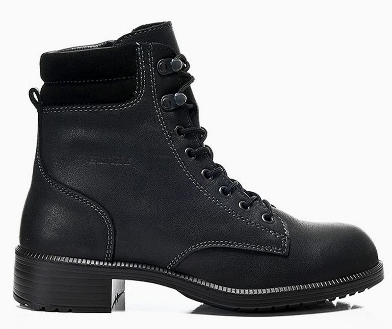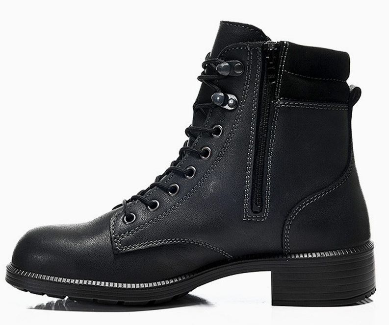 Mit dem NIKOLA black Mid ESD S2 aus der ELTEN BUSINESS Reihe präsentiert Fußschutzexperte ELTEN einen schicken Damen-Sicherheitsschnürstiefel, der sowohl im Büro als auch in der Produktion oder in der Lagerhalle eine gute Figur macht. Der schwarze Stiefel aus robustem Rindleder ist widerstandsfähig und zusätzlich mit einer Zehenschutzkappe aus Stahl versehen, so dass Gefahren für den Vorfußbereich erfolgreich abgewehrt werden können.