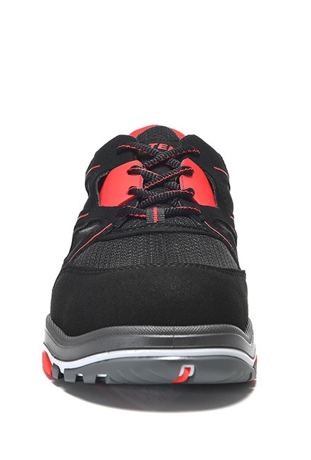 Sicherheit im Job ist kein Zufallsprodukt: punktgenaue Performance und technisch ausgeklügelte Details liefern beste Ergebnisse. Nachzuprüfen beim ANTHONY red Low ESD S1 Typ 3. Speziell auf die TPU/PU Sohle dieses Schuhs lassen wir nichts kommen, denn sie ermöglicht hervorragende Rutschhemmung in jeder Lage. Die im Sohlenprofil eingearbeiteten Drehpunkte ermöglichen zudem ein problemloses Drehen auf der Stelle, so erreicht dieser Schuh eine enorme Bewegungssicherheit. Das Obermaterial aus Mikrofaser und Mesh steht dem in nichts nach, denn es ist flexibel, leicht und sehr reißfest. Das hält auch starker Beanspruchung stand. Genauso wie die Zehenschutzkappe aus Stahl, der herunterfallende Objekte nichts anhaben können. Ein atmungsaktives Textilfutter sorgt darüber hinaus für ein angenehmes Klima im Schuh, was sich bei längerem Tragen der Schuhe als Wohltat erweist.