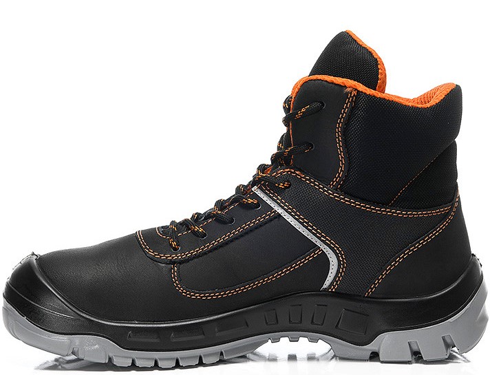 Die grobstollige Laufsohle sorgt für guten Halt auf glatten Böden und erleichtert den Auf- und Abstieg auf Leitern. Der hohe Schaft des Stiefels gibt dem Sprunggelenk mehr Halt und verringert das Verletzungsrisiko durch Umknicken. Erhältlich ist der Sicherheitsschuh in den Größen 36 bis 48.
