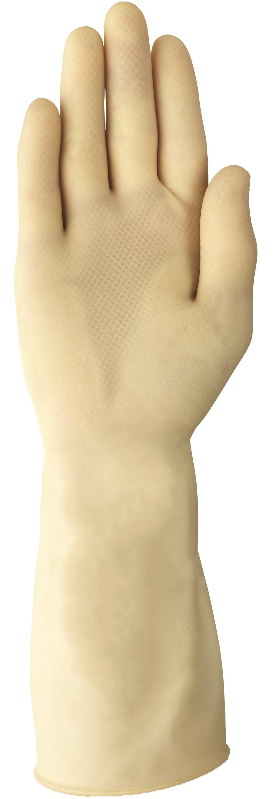 Ungefütterter Handschuh mit Rollrand aus Naturgummilatex. Nicht velourisiert. Gute Weiterreißfestigkeit. Starke Schutzschicht und doch feinfühlig. Rollrand für ein einfaches An- / Ausziehen und eine gute Weiterreißfestigkeit: Exzellente Flexibilität, hoher Tragekomfort und gute Fingerbeweglichkeit.