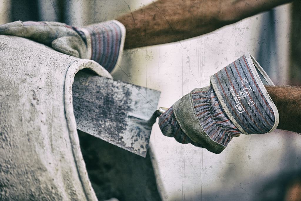 Der Gebol ECO gilt als der Allrounder auf der Baustelle – robustes Rindsspaltleder mit einer Stärke von ca. 1 mm bietet eine hohe Widerstandsfähigkeit und ein angenehmes Tragegefühl bei schweren Arbeiten am Bau und in der Werkstätte
