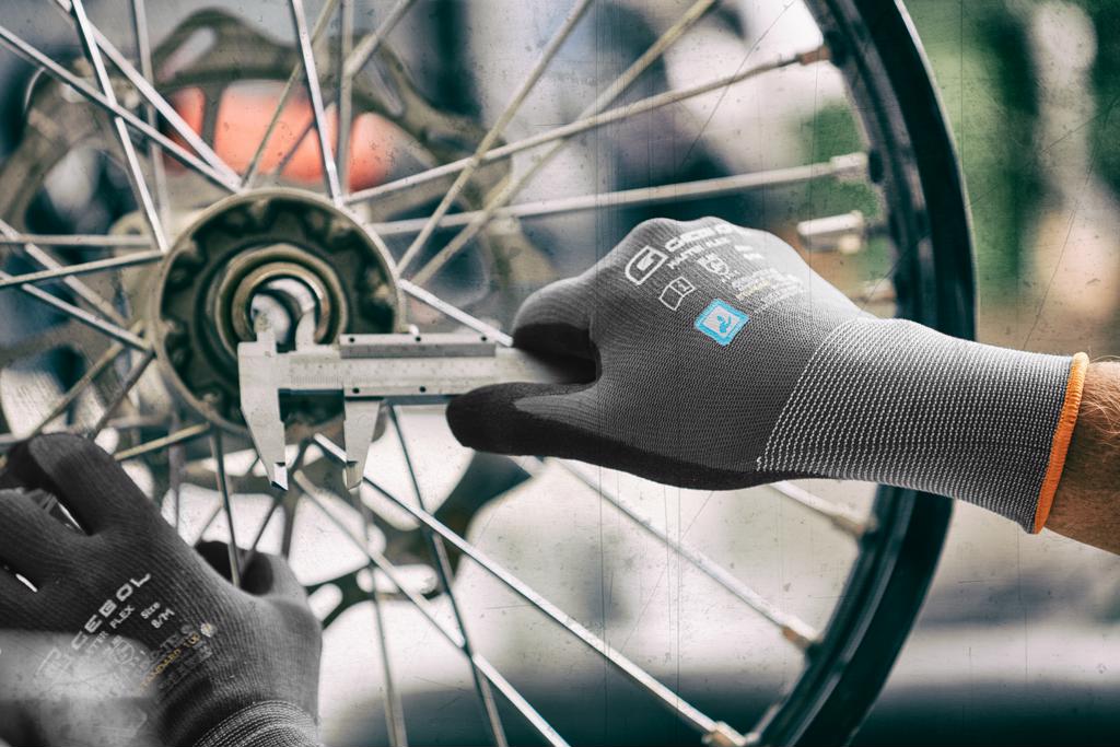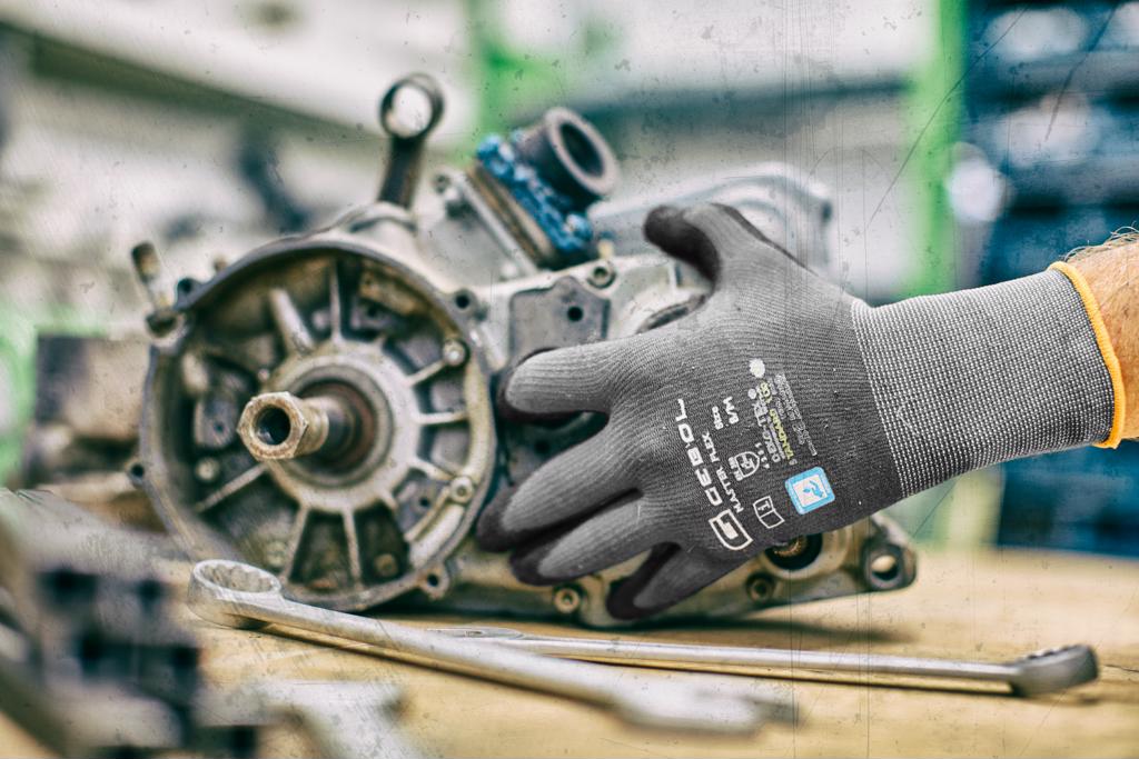 Der Master Flex besteht aus Nylon, Elasthan und einer PU-Nitril-Beschichtung mit Sandy Finish, die den Handschuh besonders strapazierfähig macht. Zusätzlich schützt die Beschichtung vor Ölen und Fetten – der Handschuh bleibt dennoch atmungsaktiv