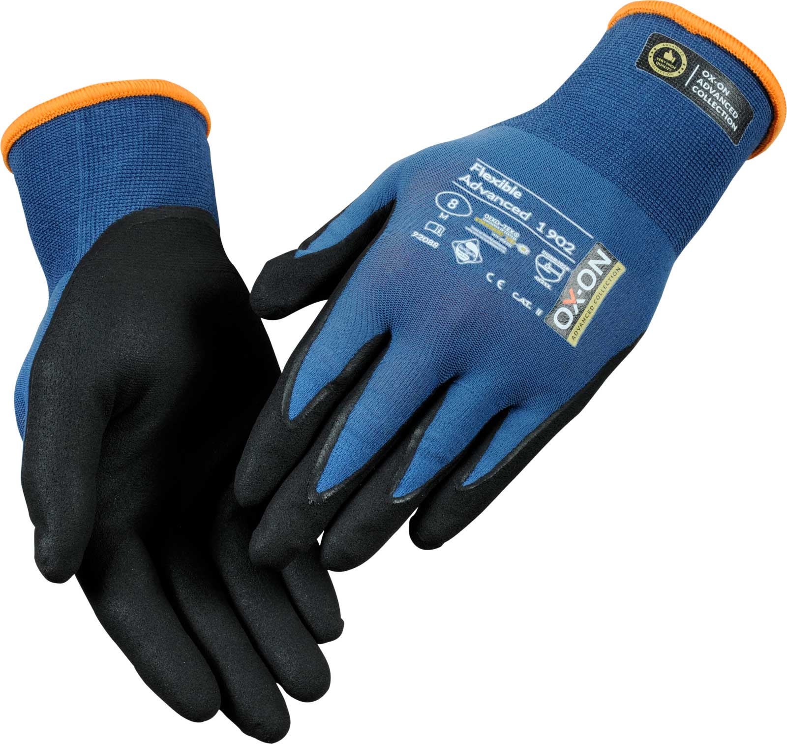OX-ON Flexible Advanced 1902 ist der feinste Handschuh seiner Klasse, hebt sich aber dennoch durch die höchste Qualität ab. Der Handschuh ist extrem langlebig und passt, als wäre er für Ihre Hand gefertigt worden. Die Passform ist herausragend und verspricht durchgängigen Tragekomfort – unabhängig von Ihrer Tätigkeit. Das Gewebe des OX-ON Flexible Advanced 1902 besteht aus Nylon und Elasthan. Somit bietet er Ihnen einzigartige Atmungsaktivität bei unübertroffener Flexibilität und Komfort. Die Handfläche und die Finger sind mit einem speziellen Nitrilschaum beschichtet, der ein hervorragendes Tastempfinden und einen präzisen, sicheren Griff ermöglicht. Der Advanced 1902-Handschuh ist OekoTex zertifiziert. Dies ist Ihre Garantie dafür, dass der Handschuh keine gesundheits- oder umweltgefährdenden Chemikalien oder Farbstoffe enthält. Darüber hinaus ist der Handschuh mit Sanitized behandelt, wodurch er sich länger frisch anfühlt und Sie vor Keimen und Schweißgeruch schützt. Ein besonderer Handschuh der Extraklasse!
