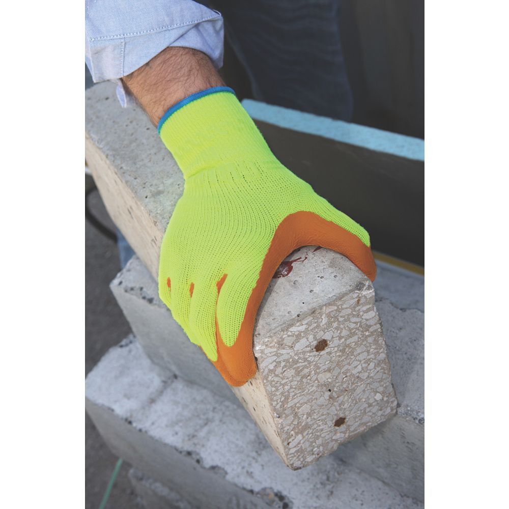 Diese strapazierfähigen Handschuhe wurden für den Schutz bei schlechten Lichtverhältnissen entwickelt und sind ideal für den Einsatz im Innen- und Außenbereich. Die getauchte Gummibeschichtung auf der Handfläche schützt die Hände und die strukturierte Oberfläche bietet zusätzliche Griffsicherheit. Ein elastisches Bündchen verhindert das Eindringen von Schmutz und Rückständen in den Handschuh, damit die Hände bequem und frei von Hautreizungen bleiben.