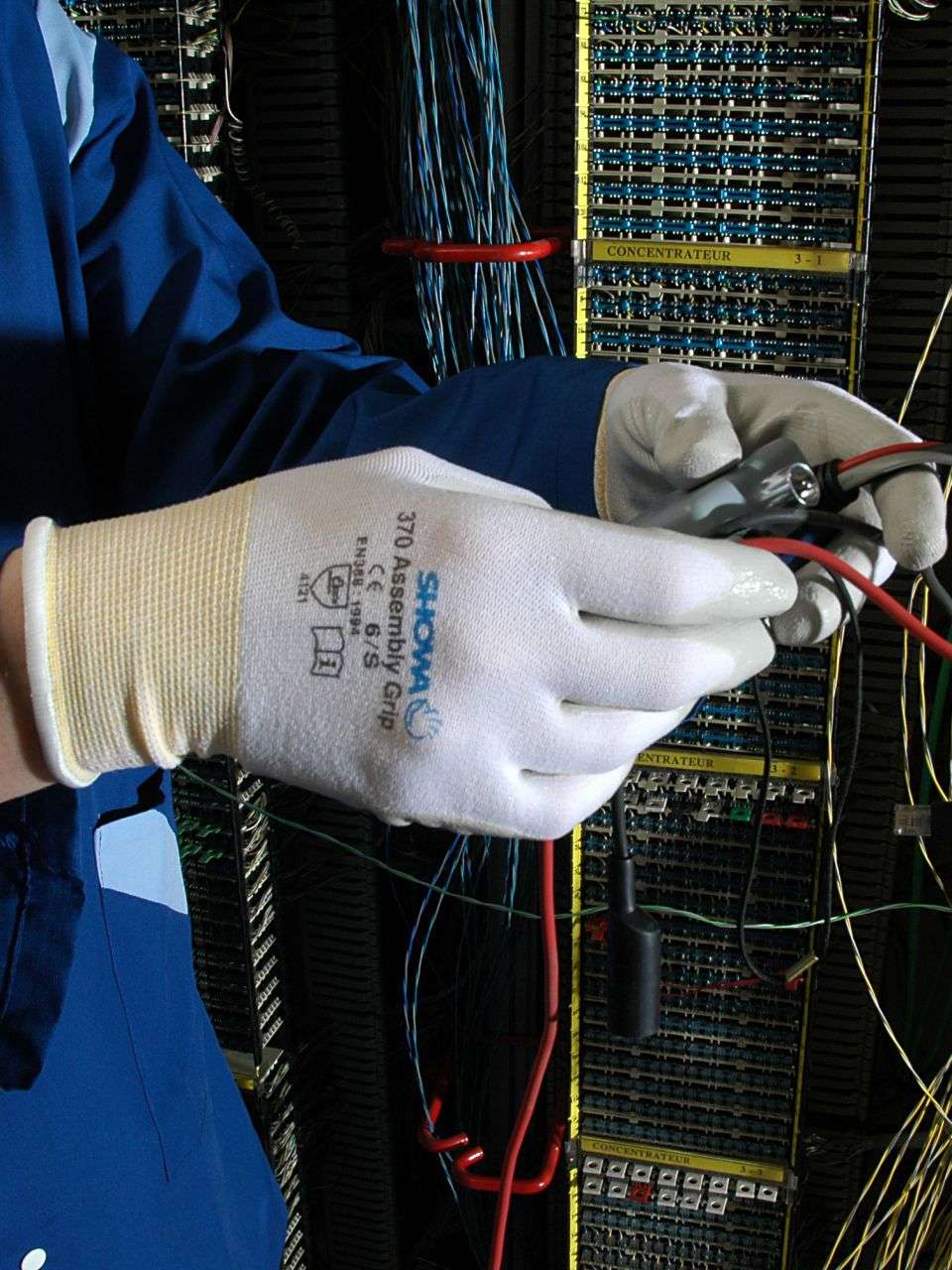 Die helle Farbe ist perfekt für den Einsatz in sauberen Umgebungen, während die strapazierfähige Beschichtung einen exzellenten trockenen Griff und taktile Präzision bietet. Die offene Rückseite lässt Luft und Feuchtigkeit entweichen, um die Schweißbildung im Inneren des Handschuhs zu vermeiden. Der 370W hat ein geringes Gewicht und ist flexibel, um den Komfort zu verbessern und ein Ermüden der Hände zu verringern.