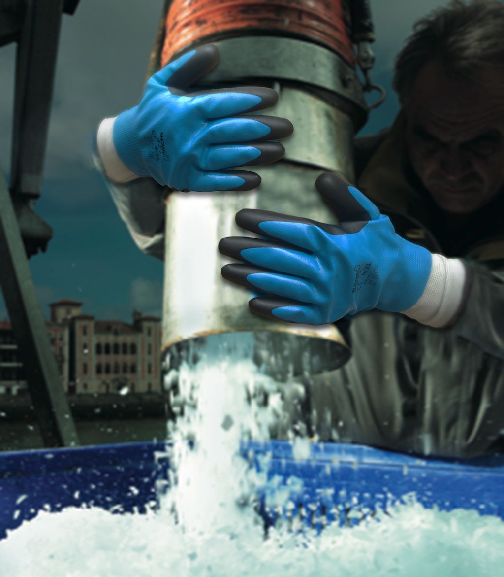 Die kälteabweisenden Handschuhe 477 wurden entwickelt, um die Hände in den extremsten Umgebungen warm und trocken zu halten, daher kombinieren die Handschuhe eine thermische Isolierung mit taktiler Griffsicherheit. Eine Schaum-Grifffläche und eine doppelte Nitrilbeschichtung gewährleisten Präzision in nassen und öligen Umgebungen, während der Innenhandschuh aus Acryl Schutz bei kaltem Wetter bietet.