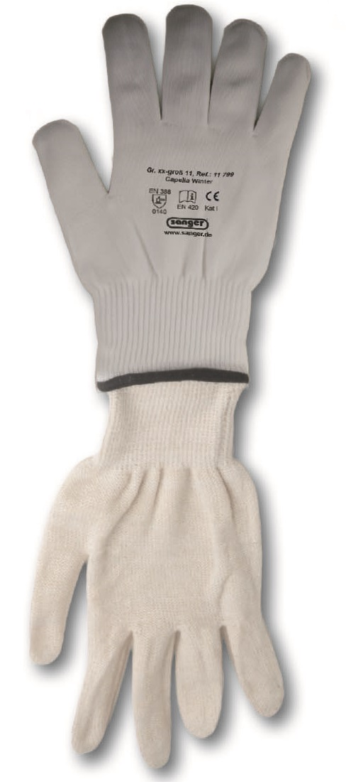 • An der Stulpe festgenähter Baumwoll-Innenhandschuh verhindert Schwitzen und leitet Wärme ab
