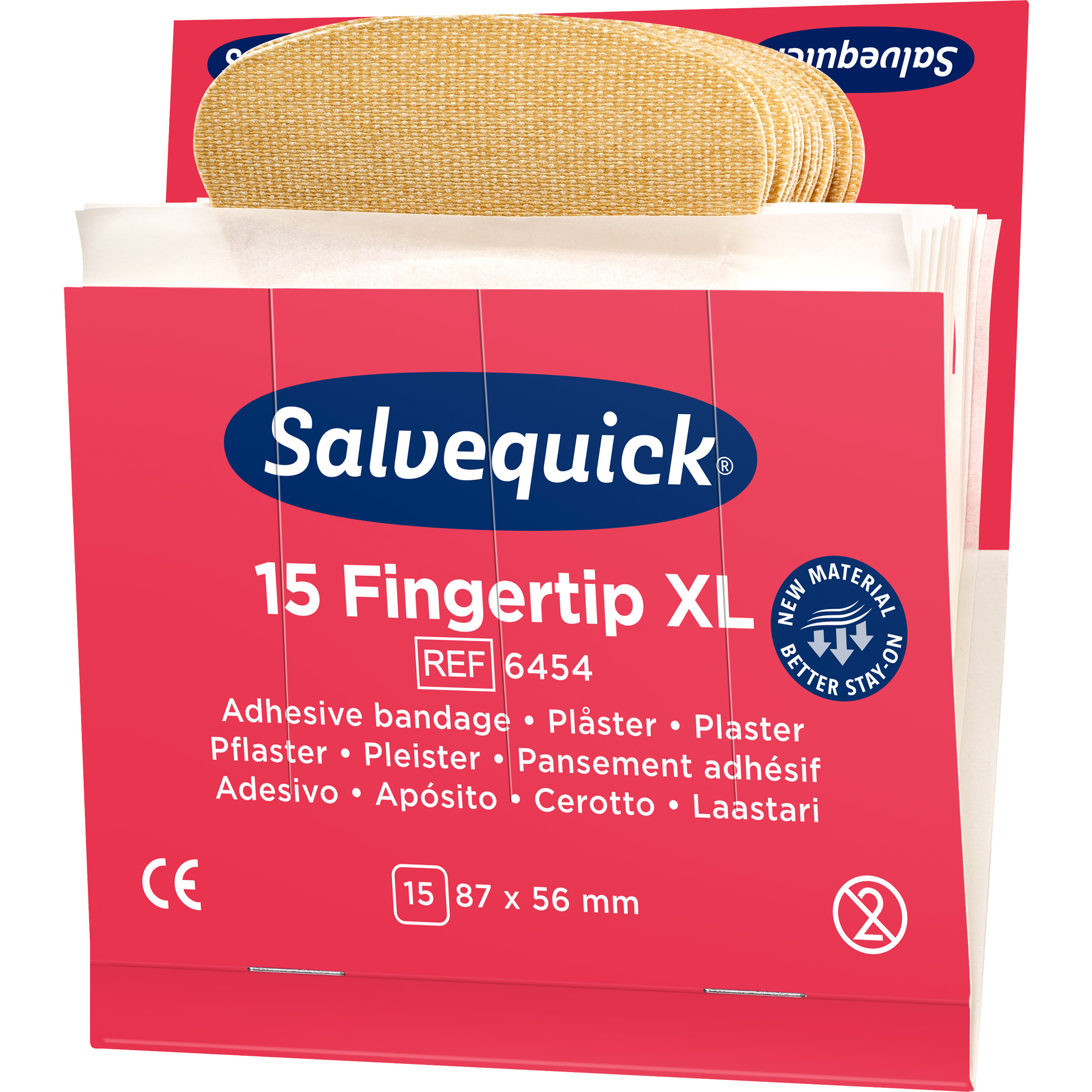 Salvequick Fingerkuppenpflaster, extra groß, sind flexible Textilpflaster für Fingerverletzungen. Auf Allergien getestet. Sie lassen sich leicht aufkleben, sind flexibel und praktisch.