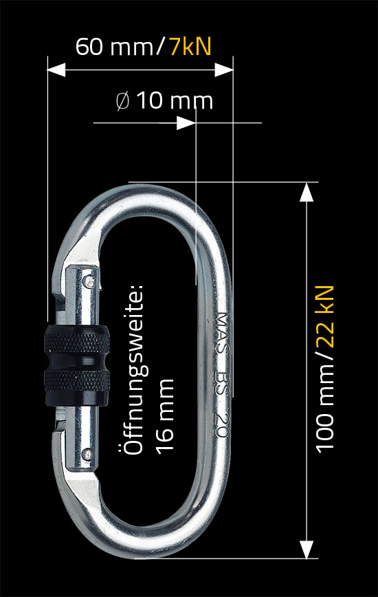 Produktinformationen "M.A.S Bergsteiger-Karabinerhaken BS 20 Stahl"
