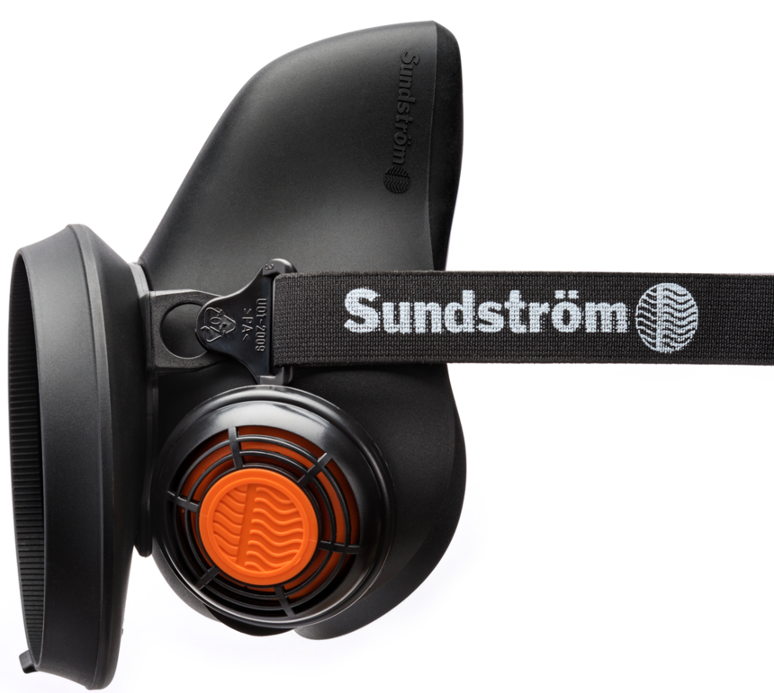 Die Halbmaske SR 100 wird aus Silikon hergestellt und ist in drei Größen S/M, M/L und L/XL erhältlich. Die Maske ist mit zwei Ausatemventilen ausgestattet, die sich durch äußerst geringen Atemwiderstand auszeichnen. Die Ventilkappen mit Abschirmer schützen die Ausatemmembrane gegen Staub und Farbpartikel. Material und Farbpigmente des Maskenkörpers sind für Lebensmittel zugelassen (FDA und BGA), so dass die Gefahr von Kontaktallergien auf ein Minimum beschränkt wird. Die einfach verstellbaren Tragebänder stellen eine V-Schleife dar und besitzen eine große schalenförmige Kopfplatte, die eine bequeme und sichere Einstellung ermöglicht. Die Maske wird entweder als Filterschutz in Kombination mit Filtern aus dem Sundström-Sortiment eingesetzt oder in Verbindung mit Druckluftzusatz SR 307 in ein Atemgerät mit kontinuierlichem Luftstrom für Anschluss an Druckluft umfunktioniert. Halter für Vorfilter sind in der Lieferung enthalten. Aufbewahrung am besten in Box SR 230 bzw. Aufbewahrungstasche SR 339.