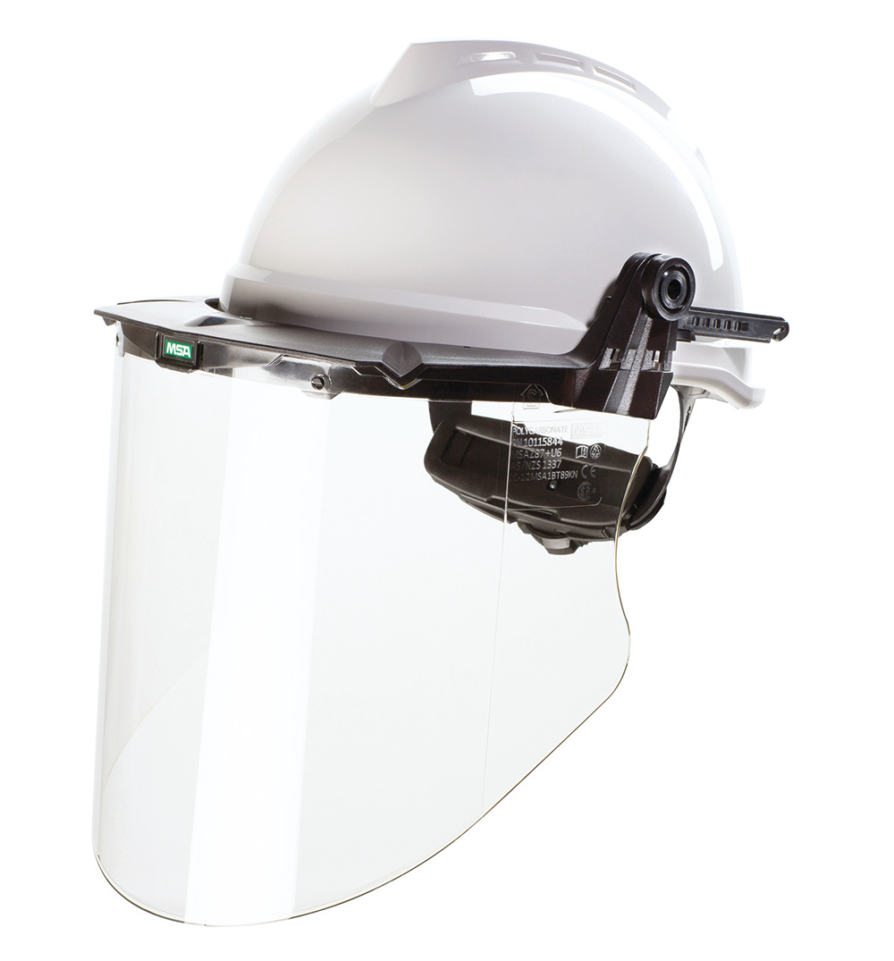 MSA Spritzgussvisiere aus Polykarbonat sind für enorme Belastungen ausgelegt. Sie schützen und sorgen für gleichbleibenden Komfort bei anspruchsvollen Anwendungen mit Störlichtbogen-Risken oder bei Stahl-/Hüttenwerken, wo sie in hohem Maß Hitze und/oder grellem Licht ausgesetzt sind. V-Gard PC Spritzgussvisiere bieten hervorragenden Schutz vor herumfliegenden Splittern, Spritzern, UV-Strahlung, geschmolzenem Metall sowie Störlichtbogen. Da sie im Spritzgussverfahren hergestellt wurden bieten sie eine hohe optische Qualität, optimalen Sichtkomfort und sie reduzieren die Ermüdungserscheinungen der Augen. Ihre Beständigkeit gegen Chemikalien und Hitze ist besser, weil sie dicker und spannungsfreier sind als Blattvisiere.